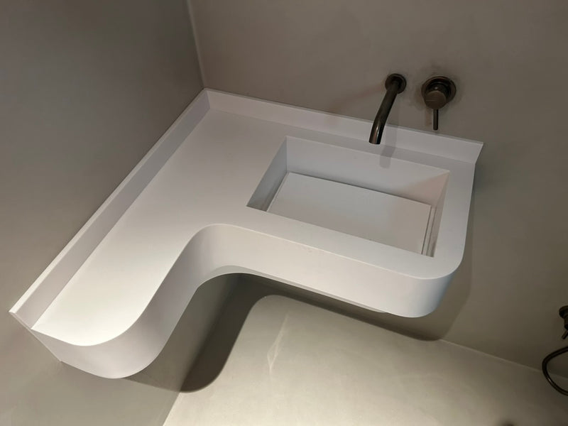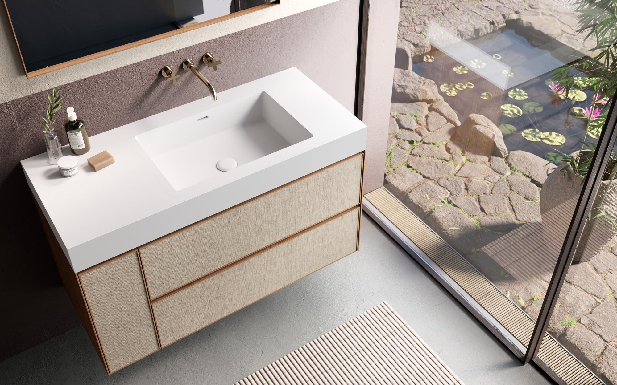 Seamless, moisture-resistant, repairable solid surface ideal for modern bathrooms.