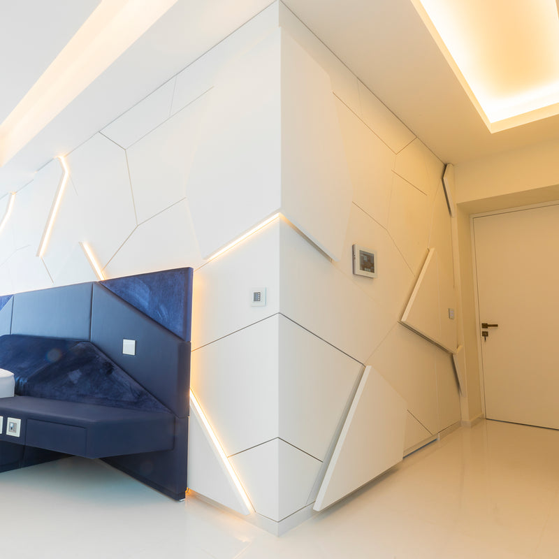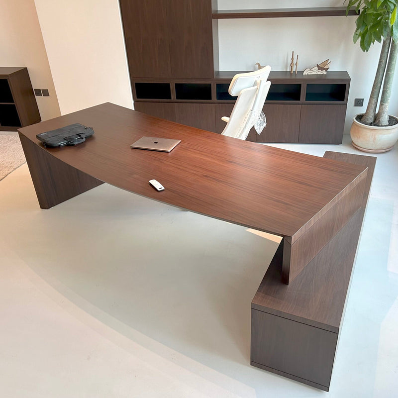 Solid wood, veneer, plywood, MDF, and HIMACS solid surface, selected for durability and design flexibility.