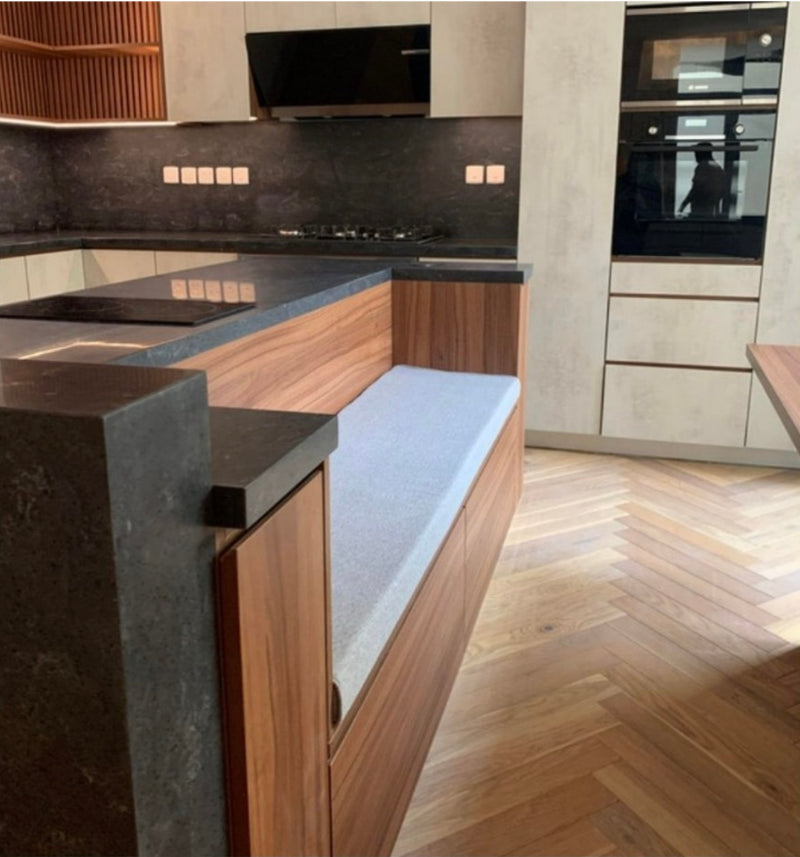 We work with premium solid wood, refined veneers, and innovative HIMACS surfaces to create kitchens that combine timeless beauty with modern durability.
