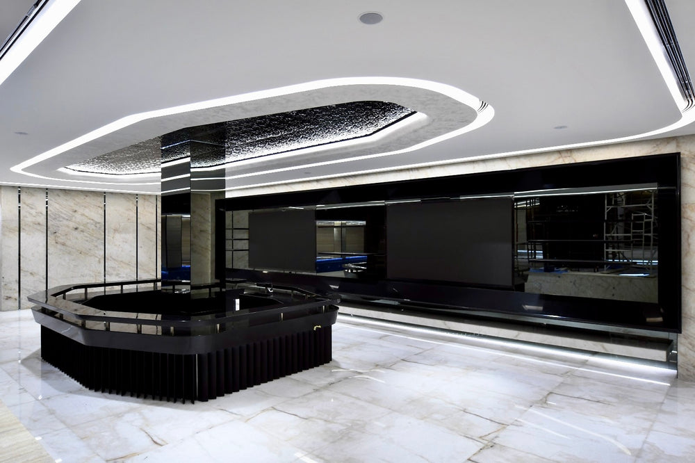 The scope includes coordination with architectural and interior design drawings, preparation of detailed shop drawings, and fabrication of all custom millwork elements including curved wall panels, recessed niches, display shelving, and solid surface countertops. All components are pre-finished in a controlled shop environment prior to delivery. Installation includes on-site fitting, alignment, and anchoring of millwork elements, integration of LED lighting in coordination with electrical trades, and final detailing and touch-ups to ensure a clean, seamless appearance. Work excludes decorative accessories, movable furniture, and electrical power supply beyond millwork-integrated lighting components unless otherwise specified.
