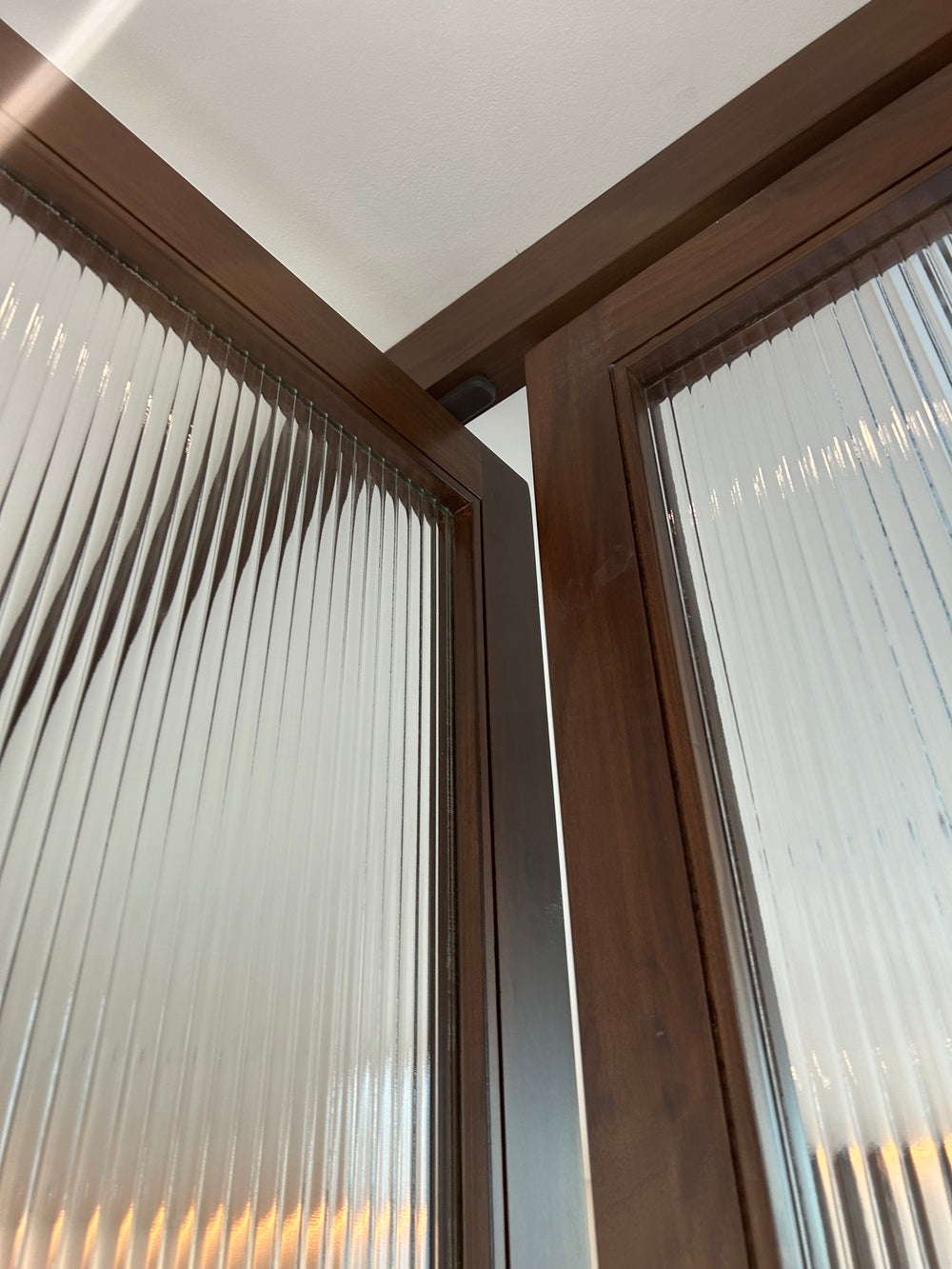 Walnut veneer, glass panels, bronze hardware